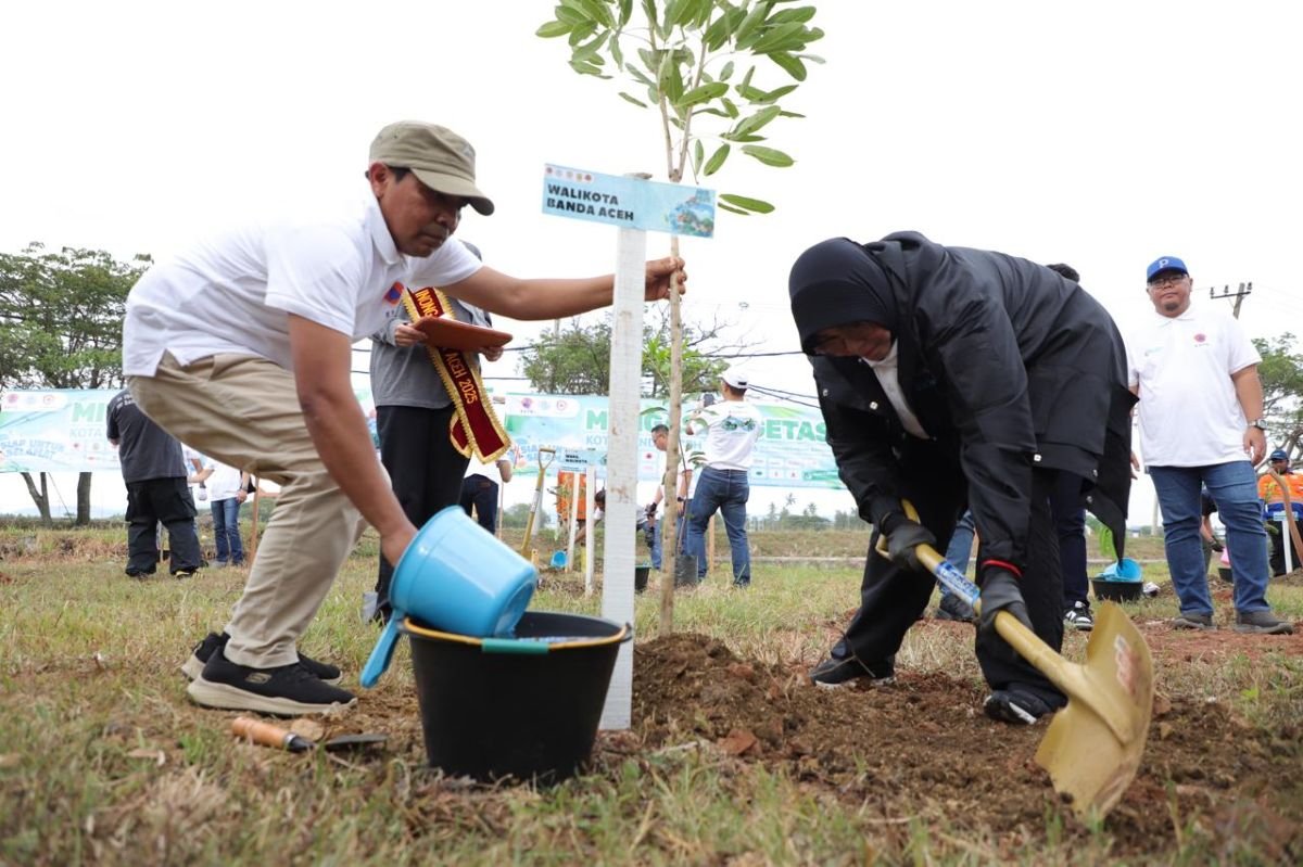 Penanaman pohon secara simbolis dilakukan di wilayah Simpang Mesra, Kecamatan Syiah Kuala, pada Sabtu (25/4/2025). Penanaman dilakukan oleh Sekretaris Utama BNPB, Rustian bersama Wali Kota Banda Aceh, Illiza Sa’aduddin Djamal serta jajaran Forkopimda.